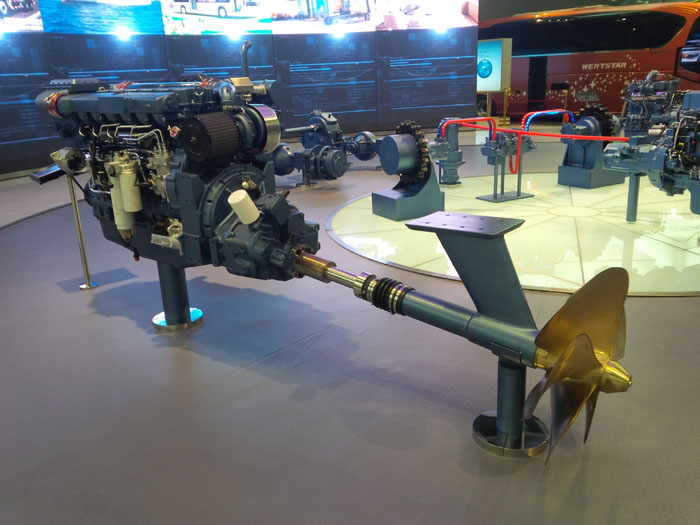 濰柴集團(tuán)展廳中展示的船用發(fā)動(dòng)機(jī)。