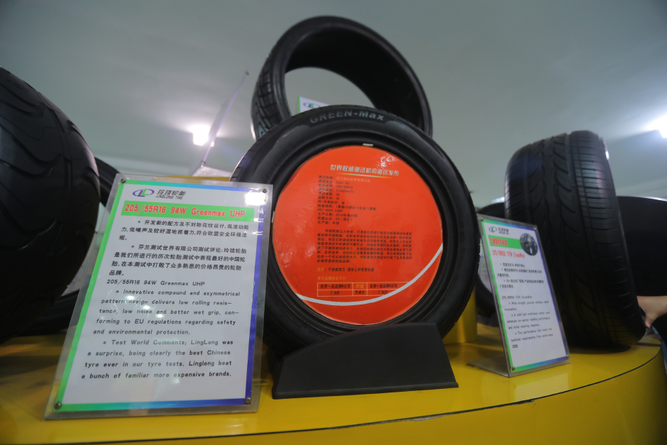 “這是我們公司生產(chǎn)的低斷面抗?jié)窕驮肼暢咝阅苻I車子午線輪胎,2015年它獲得了國家科技進(jìn)步二等獎(jiǎng),這也是國內(nèi)輪胎行業(yè)迄今獲得的最高獎(jiǎng)項(xiàng)。”今天上午,在玲瓏輪胎的展廳中,工作人員指著一款主要用于高端SUV和跑車的輪胎對(duì)采訪團(tuán)記者們說。