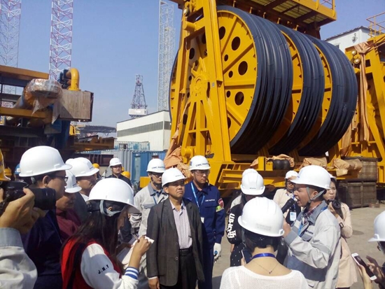 10月14日,“新常態·新定位·新提升——第十一屆中國網絡媒體山東行”采訪團成員來到煙臺中集來福士海洋工程有限公司,在觀察采訪中觸摸煙臺搶占“一帶一路”先機、不斷挺進“深藍”、打造海洋利器的脈博。
