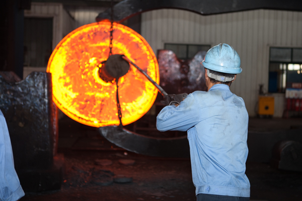 19日下午,從濟(jì)南市區(qū)出發(fā),沿經(jīng)十路一路向東,一個(gè)半小時(shí)后就能看到緊鄰國(guó)道的山東伊萊特重工辦公大樓。敞亮開放的樓層設(shè)計(jì)、現(xiàn)代化的生產(chǎn)線、幾處以海外城市命名的房間,整個(gè)廠區(qū)在不經(jīng)意間流露出幾分國(guó)際范兒。走進(jìn)鍛造車間,首先映入眼簾的是巨大的鍛造操作機(jī),這個(gè)“大力士”能舉起100噸重的鋼材原料,三下五除二就能“捏成”直徑8米的環(huán)形鍛件。一會(huì)兒功夫,一個(gè)新的環(huán)形鍛件已基本成型,巨大的圓環(huán)燒得通紅透亮,十分壯觀。車間工作人員告訴記者,等明年新的生產(chǎn)線投產(chǎn)后,能整體鍛造出直徑16米的環(huán)形鍛件,是目前世界上最先進(jìn)水平。