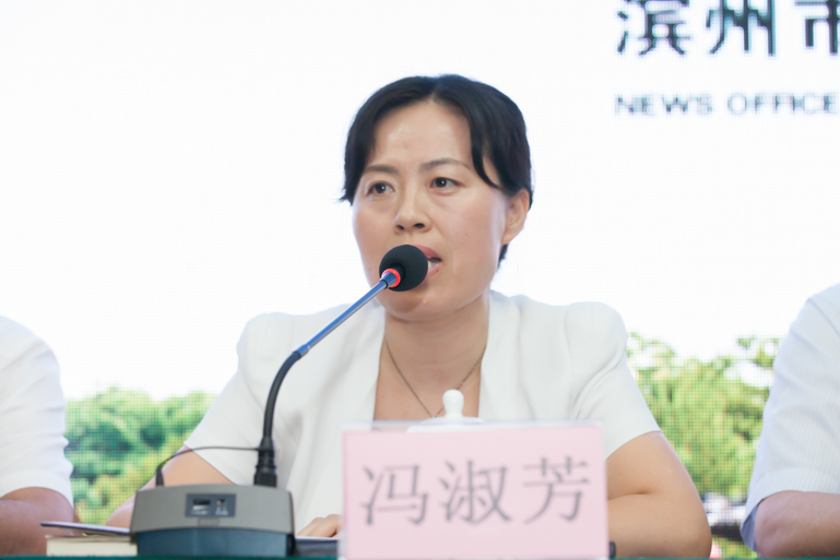 22日下午,在濱州市舉行的新聞發布會上,濱州市發改委副調研員、新聞發言人馮淑芳進行有關專題發布(撒偉 攝)