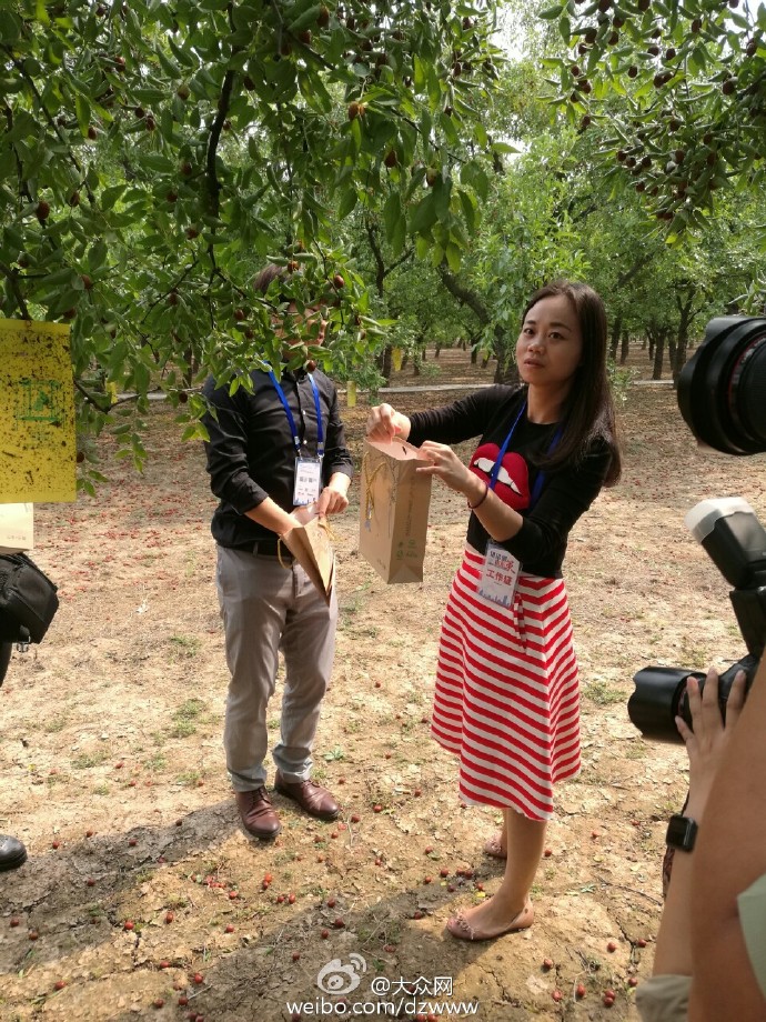 大眾網9月23日快訊 9月23日中午,第十二屆中國網絡媒體山東行西線采訪團來到德州樂陵。一走進中華棗博園,滿地盡是“樂陵棗”,一片片染紅了田園。據了解,這里的棗樹中有一棵1600歲的古棗樹。棗博園里客來訪,金絲小棗甜脆香。