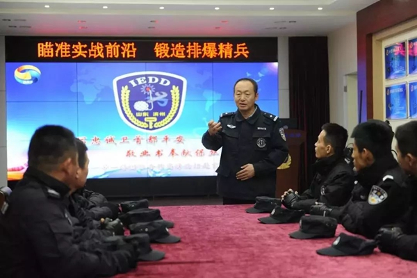 “徐勝利愛鉆研”是大家公認的。由于濱州搜排爆工作起步較晚,基礎薄弱,徐勝利帶領隊員們刻苦鉆研排爆技能,搜集全國乃至全世界的排爆案例,逐一分析點評,每年都能積累整理一大本。日積月累的鉆研使這只隊伍業務水平突飛猛進,大隊設計建成了集教學、訓練、考核、研判為一體的搜排爆研判中心,達到國內領先水平。