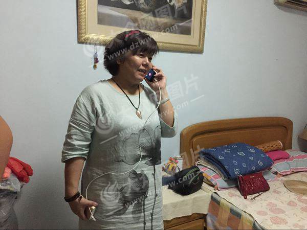 張夢雪的母親劉振華與遠在里約的張夢雪通電話。