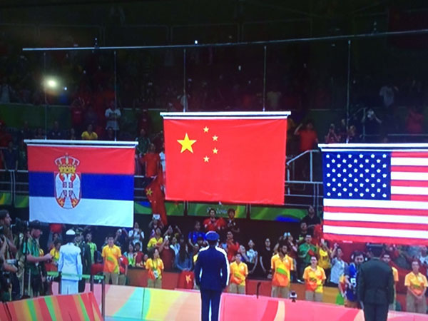在張夢雪為中國代表團射落首金這個讓人感到歡慶的時間里,頒獎儀式上的一幕卻讓中國觀眾有些不高興,甚至感到有些憤怒,那就是在升旗儀式上使用的中國國旗出錯了,中國國旗上的四顆四顆小五角星應該各有一尖正對著大星的中心點,而頒獎儀式上升起的旗子卻是平行排列的。國旗是一個國家的象征,絕對是不容允許的。隨后中國代表團就向里約奧組委反映了這個問題,里約奧組委也表示今后會嚴肅對待。