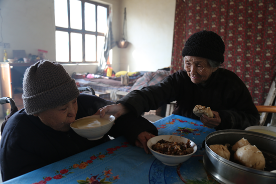 2012年,大兒媳突然得了重病。經過治療,雖然挽回了生命,生活卻再也不能自理。大兒子家庭貧寒,依靠幾畝薄田度日。孫子孫媳都有工作,曾孫還在求學。兒媳沒人照顧,80多歲的高丕英毅然接過了照顧兒媳的重任。因為癱瘓,兒媳婦內心焦慮,經常對她發牢騷,高丕英卻無怨無悔,還時常寬慰她。每天早晨,她得親自做好飯,一勺一勺喂到兒媳嘴里,已是84歲高齡的她,動作不再敏捷,眼睛也有些昏花,有時候拿勺子的手會顫抖,甚至會灑出來。但喂兒媳婦的一日三餐,一頓也沒落下過。