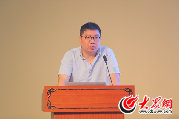 淘寶頭條首席內(nèi)容官鐘躍東做主旨演講。大眾網(wǎng)記者 王長坤 攝