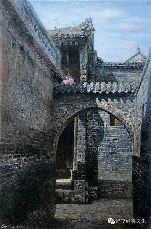 古代建筑,經(jīng)過流光歲月的洗禮,留下的,是斑駁,是滄桑。舊街古巷的暗色調(diào),予人靜謐與踏實(shí),就像一位飽經(jīng)滄桑的老者,欲將滿腹的故事說與你聽。逝去的風(fēng)云滌蕩,輝煌惆悵,歷歲月沉積,洗盡鉛華后,惟余干凈與淳樸,莊嚴(yán)與厚重。古建筑的紅墻、灰瓦,青石,朽門,渾厚而澄靜,悠遠(yuǎn)而低調(diào)。無窮韻味,就深藏于一磚一瓦,一草一木,一庭一巷之中。它們那斑駁陸離的光色、古韻悠長的構(gòu)造、拙樸漬實(shí)的質(zhì)感與朦朧恢宏的意境,借助繪畫語言客觀地真摯呈現(xiàn),來喚醒世人塵封的記憶、聆聽久遠(yuǎn)時(shí)光的追索,敬畏歷史,珍惜現(xiàn)世。