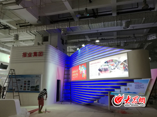 大眾報業(yè)集團(tuán)展館正在進(jìn)行最后的布展工作。