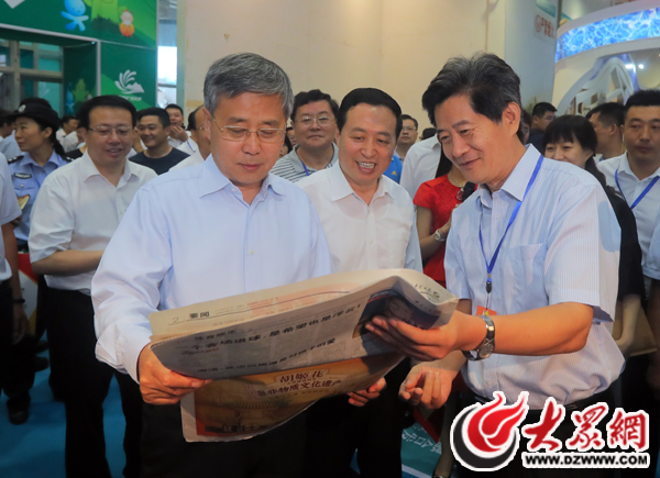 大眾網(wǎng)濟(jì)南8月25日訊 8月25日,第六屆山東文博會(huì)在濟(jì)南國(guó)際會(huì)展中心拉開(kāi)帷幕,主題是“轉(zhuǎn)型升級(jí)、融合發(fā)展、創(chuàng)業(yè)創(chuàng)新”。省委副書(shū)記、省長(zhǎng)郭樹(shù)清參觀大眾報(bào)業(yè)集團(tuán)展區(qū),省委副書(shū)記龔正,省委常委、宣傳部長(zhǎng)孫守剛等陪同參觀。大眾報(bào)業(yè)集團(tuán)黨委書(shū)記、董事長(zhǎng)、總編輯傅紹萬(wàn)匯報(bào)集團(tuán)推進(jìn)媒體融合發(fā)展,形成融媒體業(yè)態(tài),不斷增強(qiáng)核心競(jìng)爭(zhēng)力的經(jīng)驗(yàn)和做法。