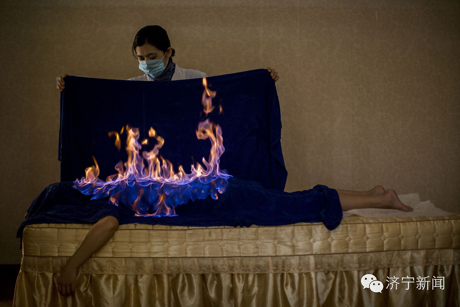 2014年11月6日上午,李村一家中醫(yī)保健館內(nèi),一位腰椎不好的患者正在體驗(yàn)中醫(yī)“火療”療法。治療過程中,一條厚毛巾被蓋在患者的患處,并倒上混合了藥水的酒精,經(jīng)過點(diǎn)燃焚燒幾秒種后再迅速撲滅。據(jù)介紹,火療治療法由來已久,是中醫(yī)的一種療法,符合中醫(yī)治療原理,跟拔罐、針灸有相似之處;鸠煹牟僮髡咝枰邆溆幸欢ǖ馁Y質(zhì),才能對癥下藥,病癥對應(yīng)的穴位及火燒時(shí)間長短的控制都至關(guān)重要。李雋輝 攝