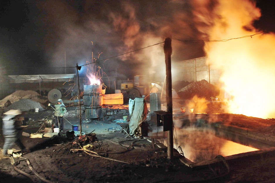 3月16日晚10時(shí),記者暗訪時(shí)發(fā)現(xiàn),在濟(jì)南歷城區(qū)唐王鎮(zhèn)小徐家莊村東北角一處非法煉鋼點(diǎn),六七名工人正忙活著,爐火苗躥出很高,染紅了夜空,空氣中彌漫著嗆人的煙灰。附近還有多座規(guī)模大小不同的非法冶煉廠、塑料小作坊趁著黑夜在生產(chǎn)。向有關(guān)部門(mén)舉報(bào)后,18日上午,歷城區(qū)環(huán)保局、公安局、城管等執(zhí)法部門(mén)聯(lián)合執(zhí)法,取締了這家煉鋼廠和另一處非法煉鋁窩點(diǎn)。齊魯晚報(bào) 作者:張中 編輯:王娟