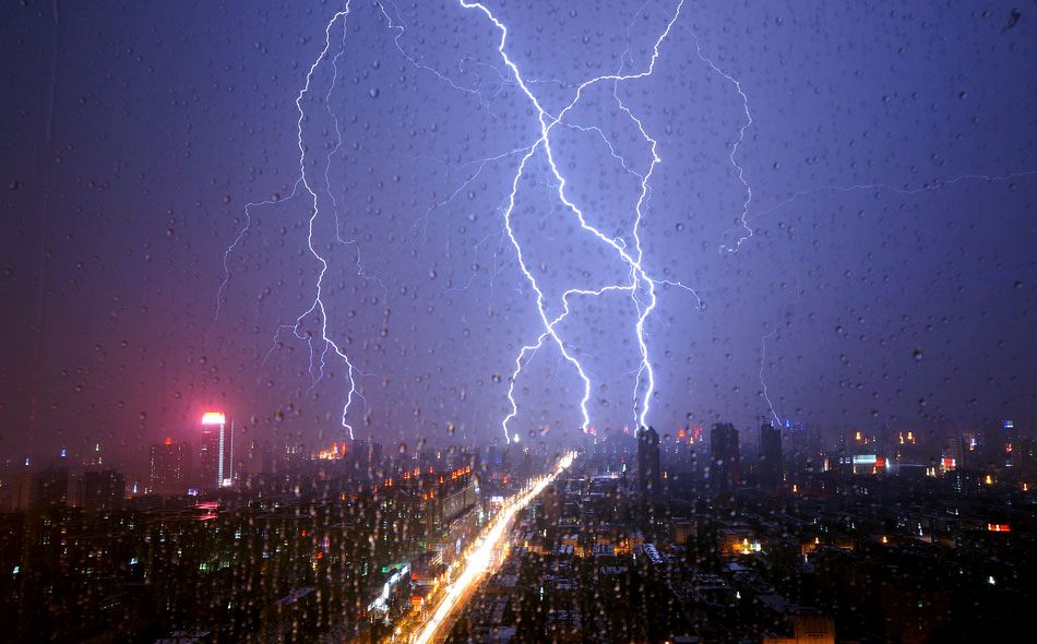7月30日晚10:40暴雨如注,一道道閃電劃破濟南的夜空。生活日報 作者:徐延春 編輯:于梅君