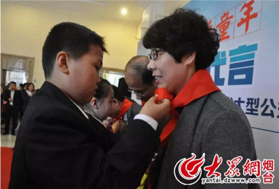 小學生為與會領導戴紅領巾