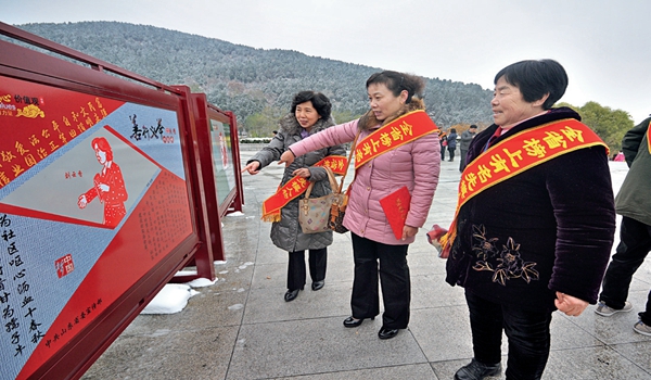 15全省四德榜模范先進人物事跡在泰山天外村廣場進行為期一年的展示 (司剛 /攝影)