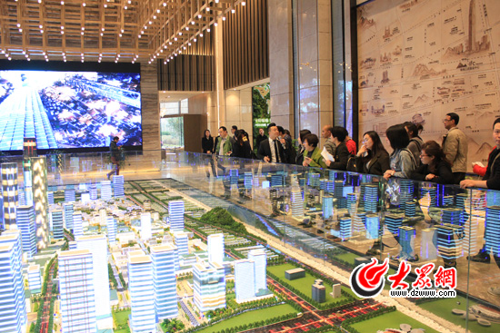 采訪團(tuán)與山東省金融辦公室政策法規(guī)處副處長(zhǎng)賈洪斐一同來(lái)到濟(jì)南中央商務(wù)區(qū)。在已開工建設(shè)的綠地山東國(guó)際金融中心,濟(jì)南市金融辦副主任李洪偉向采訪團(tuán)記者介紹了濟(jì)南市金融工作以及CBD推進(jìn)情況。