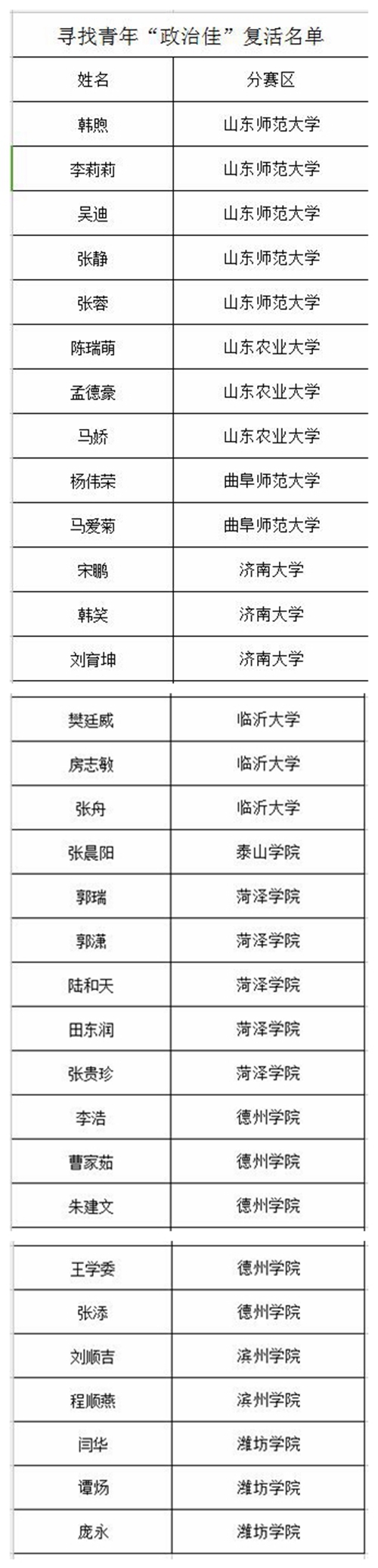 經過尋找青年“政治佳”決賽評委會審定,現公布決賽選題和通過復活通道晉級決賽的32位選手名單(附后)。最終,155位晉級決賽的選手,將從以下7個選題方向中進行選擇,自命題完成決賽參賽作品。