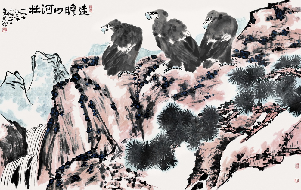 《松鷹》305x190 1979年作 款識:遠瞻山河壯 1979年春,八十二歲,苦禪