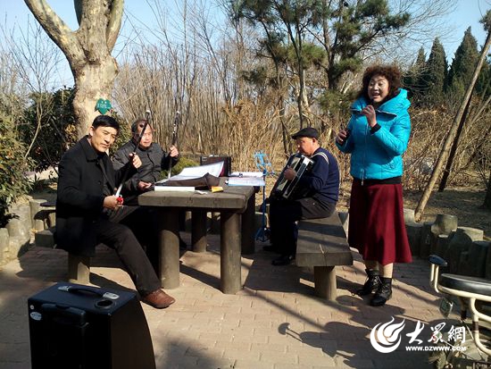 劉老師雖然過了知天命之年,但思想并不守舊,他特別強調樂曲要與時俱進,講究“老歌新唱”。據劉老師說,他們還有一個音樂團隊,里面有拉多種樂器的,經常組織去日照各街道、小區演出,唱得最多的是與時俱進的“紅歌”。平時則一個電話,音樂發燒友們就可以聚起來。像今天下午雖然只招呼來了四五人,但裝備齊全、彈唱俱佳,樂曲通俗接地氣,吸引了不少人駐足傾聽。同是二胡演奏愛好者的馬老師之子說:“爸爸愛好樂器,老人有積極健康的愛好,家里人都支持!”
