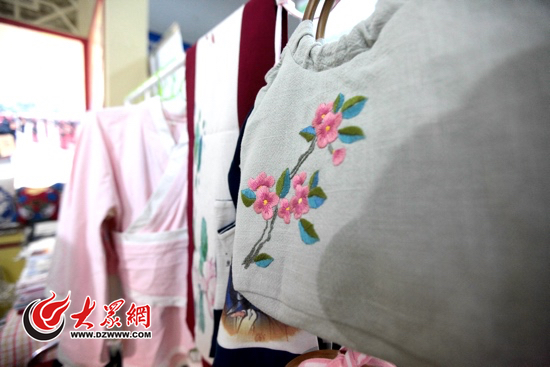魯錦技藝是國家級非物質文化遺產保護項目,對應傳統的“女紅”,近年來受到熱愛傳統文化人士的追捧。現場展示的魯錦圍巾、提包、衣物、抱枕等選材自然、手工制作、造型古樸,被眾多觀眾和采購商青睞。