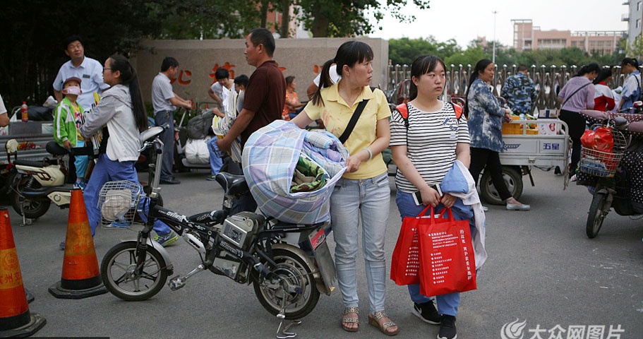6月8日,濱州市,2017高考結(jié)束了最后一門考試,也就意味著高中生活就此結(jié)束,住宿生們開始同家長一起著手將自己的個(gè)人物品搬離學(xué)校宿舍區(qū)。由于宿舍區(qū)離接送車輛停車的地方還有相當(dāng)遠(yuǎn)的距離,很多家長背著沉重的包裹累的上氣不接下氣。大量迎接考試的車輛將學(xué)校門口... [詳細(xì)]