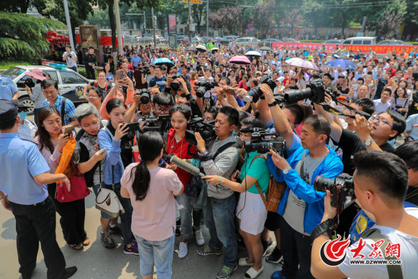 高考首場語文考完了,山東一考點門口快被擠爆了!