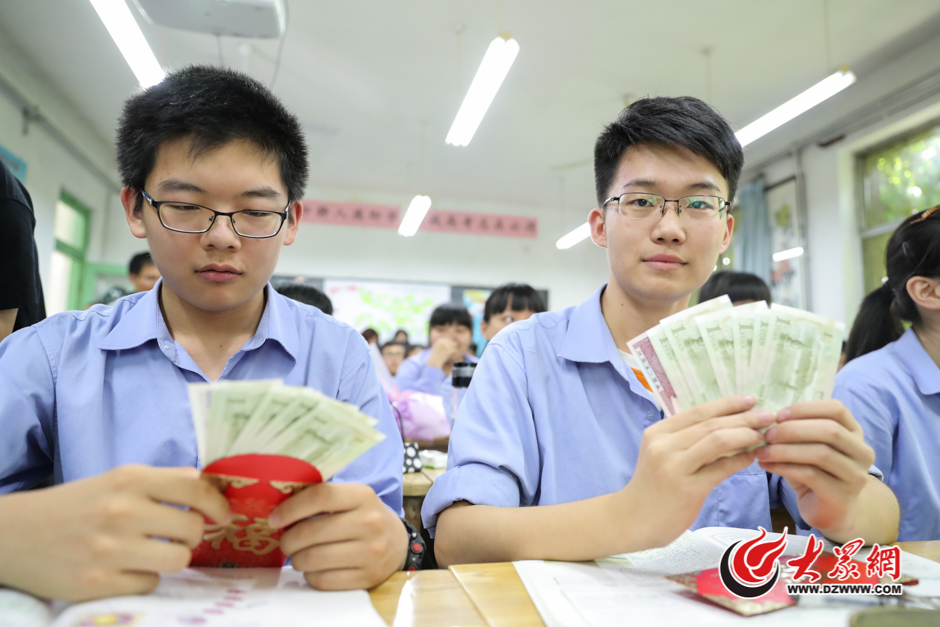 山東省實驗中學高三一班班主任呂秀亭老師為學生們每人發了7元五角的紅包。高考滿分750分,呂老師希望以此能祝福每位學生都能考出好成績。大眾網記者 王長坤 攝