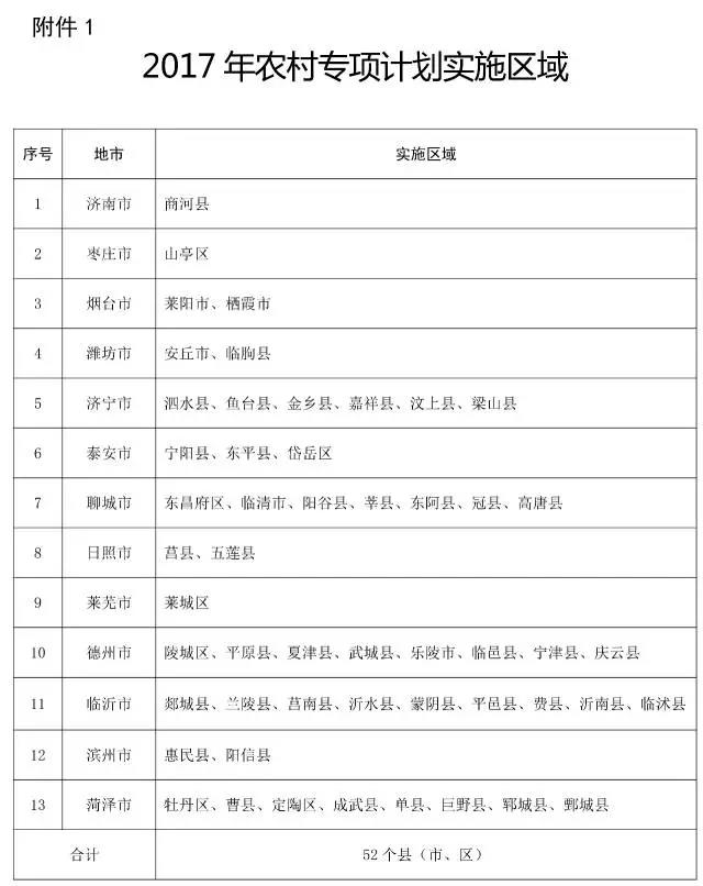 圖為52個具備報考農(nóng)村專項志愿計劃的財政困難縣具體名單