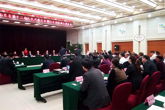 山東省十二屆人大六次會議煙臺代表團進行分組審議。