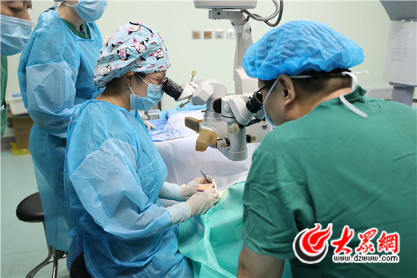 山東大學第二醫院眼科主任張晗正在為患者開展手術