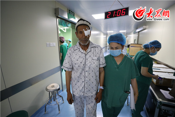 7月21日上午12點,專家又為麥蓋提縣人民醫院第二批40例白內障患者進行手術,手術一直持續到下午四點。手術一結束,專家團隊又開始進入到手術設備的拆裝工作,兩個小時后,又要奔赴下一站,200公里外的英吉沙縣人民醫院,那里還有超過20例患者等待山東的專家做最終的篩查和手術。