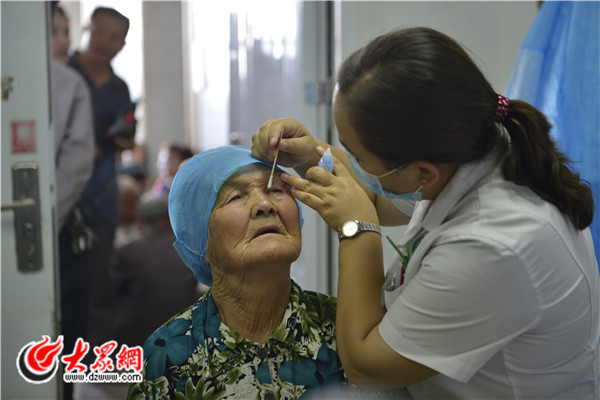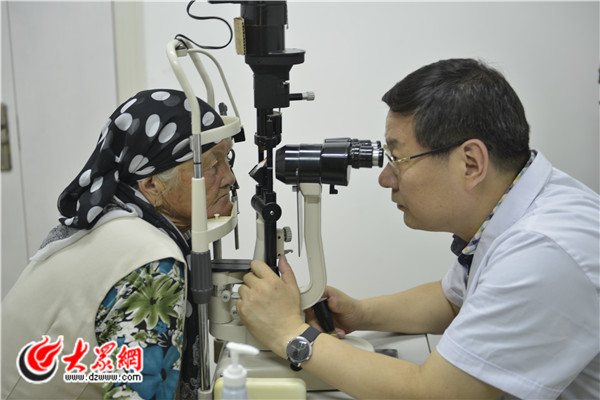 7月18日上午,山東大學(xué)第二醫(yī)院眼科主任張晗為帕提古麗·祖農(nóng)做了細(xì)致的術(shù)前檢查,幸運(yùn)的是,老人符合手術(shù)條件。攝影/王厚江