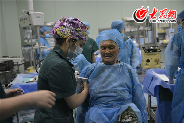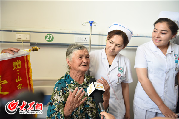 帕提古麗·祖農(nóng)告訴醫(yī)護(hù)人員,不停的說,沒想到白內(nèi)障手術(shù)會(huì)這么快。山東的專家水平真是高。攝影/王厚江