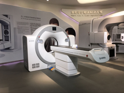 在放射診療專區,采訪團記者們看到了3臺放射診療設備。“這臺機器是大孔徑螺旋CT,目前全球僅有兩家公司能夠制作,一家是飛利浦,另一家就是新華醫療。我們的產品推出后,將打破行業壟斷,促使國外產品的價格從700萬元降到500萬元。”放射診療市場部部長王波向采訪團記者們介紹說。