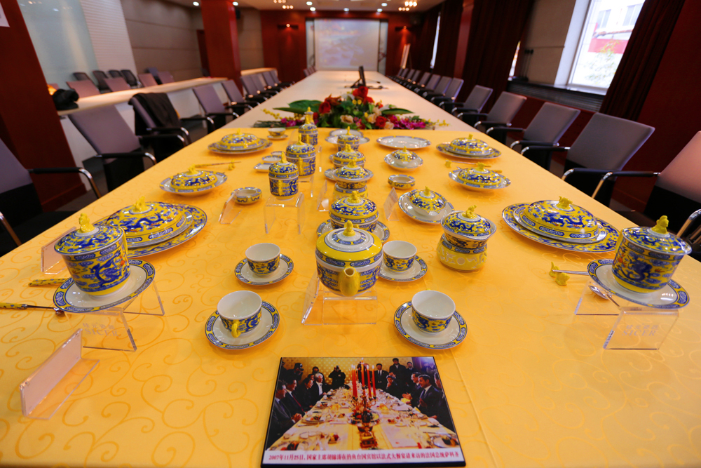 “1999年初,釣魚臺國賓館在全國范圍內遴選國宴用瓷,各大陶瓷產區(qū)的知名陶瓷企業(yè)都參與了。硅元以陳貽謨?yōu)榇淼脑O計人員,參考中國歷代古瓷珍品,靈活運用民族元素,突出硅元瓷器的材質和釉料優(yōu)勢,研發(fā)設計了中華龍系列產品。”殷書建對記者介紹說。1999年9月份,建國50周年大慶前夕,中華龍產品從全國各大陶瓷產區(qū)脫穎而出進入釣魚臺國賓館等地。