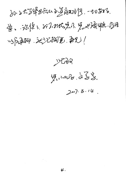 爸爸,您雖然永遠的不能給我寫信了,這個您放心就是了。該我寫信回報給您的時候。爸爸,通往蒼天是有神靈快遞的,我想,在我讀信的同時,您一定同時聽到了我的心聲。喔,差點忘了。母親要比您走前,大不一樣呀!身體現已養的胖許多,以躺臥為主的母親,現能夠拄拐且蹣跚獨自地行走了,一口氣能夠上五樓呢。爸爸,這是您夢想的實現。母親只是駝背沒有變。飯量大增,頓頓喝湯一碗,一個大饅頭,一小碗菜,每一天由您在時的服藥一次五六種混合藥片,現完全停止服藥,母親的睡眠質量不錯。沒有人會相信每天戴上老花鏡重拾納襪墊子活路。頭幾天帶老家去一趟,讓左鄰右舍的人驚訝不已。耳聾的母親,時而也能與人交流。這個亦是鄰居們所沒有料到的事情。現在老家的人,都把母親現狀傳為佳話呢。爸爸您放心吧。您擔憂您走后母親會隨您而去的想法成為泡影。再說您的孫子大學畢業后從事金融工作,一切安好。爸爸,深夜了,我不打擾您了,您也該休息。有話以后再聊!就此擱筆,再見!