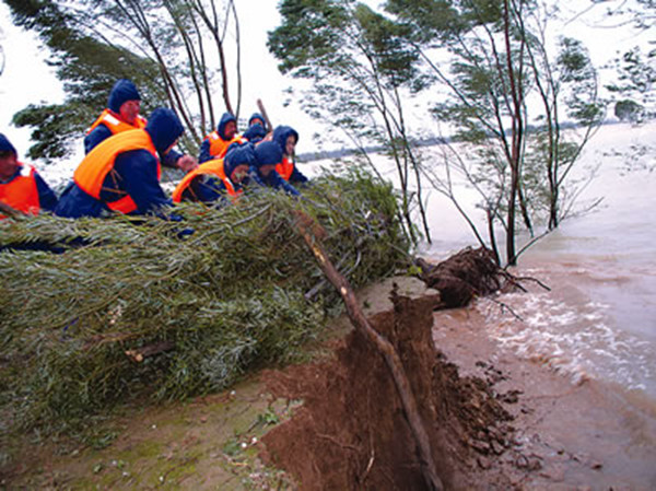 輕傷不下火線。幾天下來,搶險人員僅有的工作服基本都已刮成了布條,鞋子也露出了腳趾,好多人手上起泡,沒有人不眼睛紅腫,沒有人不聲嘶力竭。蘇衍豪親眼看到有民工把幾根木頭送到堤防,癱倒在大堤上。