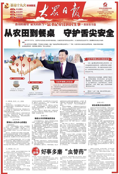 習近平總書記視察山東提出的“以滿足吃得好吃得安全為導向”,是對農業大省、食品大省、人口大省山東的殷切囑托,而建設食安山東,“建成全國食品最安全地區之一”則是山東莊嚴的承諾。