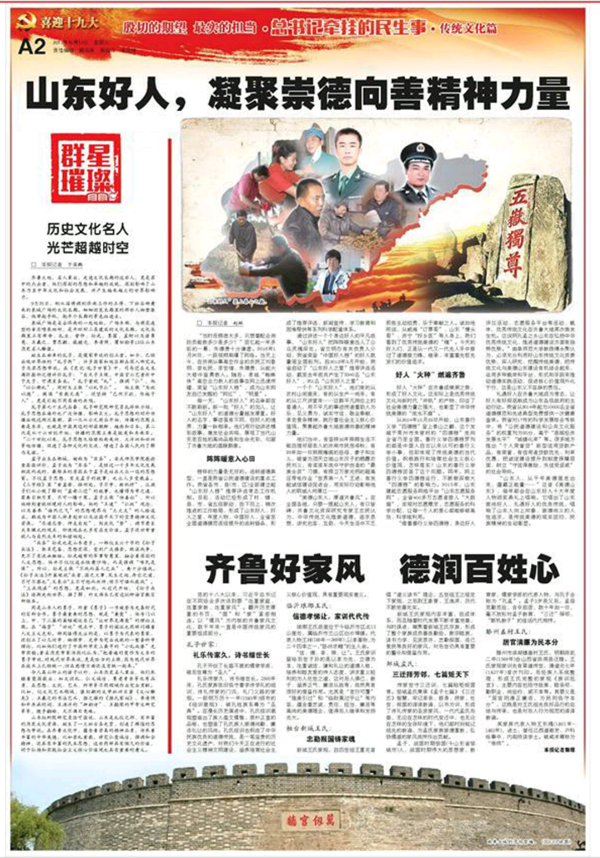 山東社科院研究員涂可國說,山東是禮儀之邦,有豐富的歷史文化資源,誕生了一大批古圣先賢,創造了輝煌的思想與學說。在齊魯文化中,蘊含著崇高的精神品質,傳承著豐富的中華美德,比如崇禮重教,講究仁愛誠信,強調和合精神,還具有豐富的民本思想,這些同樣具有恒久的價值,對于弘揚和實踐社會主義核心價值觀也具有重要的意義。