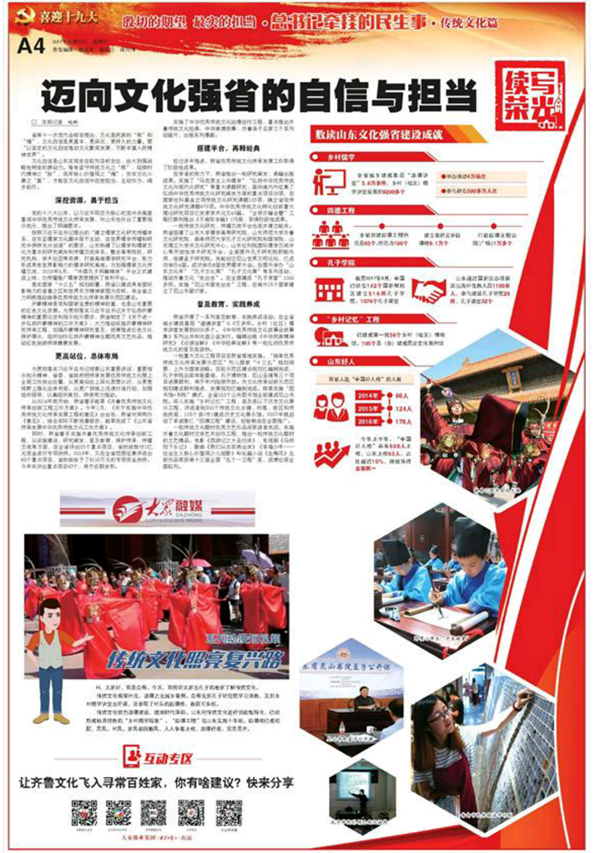 為貫徹落實(shí)習(xí)近平總書記視察山東重要講話、重要指示批示精神,省委、省政府把傳承發(fā)展優(yōu)秀傳統(tǒng)文化擺上全局工作突出位置,從更高站位上深化思想認(rèn)識(shí),從更寬視野上強(qiáng)化總體布局,從更廣領(lǐng)域上迅速付諸行動(dòng),加強(qiáng)組織領(lǐng)導(dǎo),認(rèn)真組織策劃,持續(xù)用力推動(dòng)。