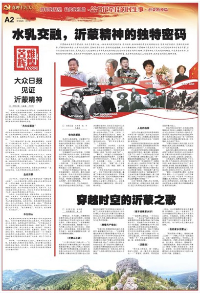 78年前,大眾日報誕生在沂蒙山區。在硝煙彌漫的戰爭年代,這張紅色的報紙始終在前線,見證著慘烈與悲壯,經歷著苦難與輝煌。一路走來,這張深受沂蒙精神滋養,以傳播沂蒙精神為己任的報紙,記錄和講述著一個個黨和人民水乳交融、生死與共的感人事跡,并通過自身實際行動,不斷強化著傳承弘揚沂蒙精神的自覺。