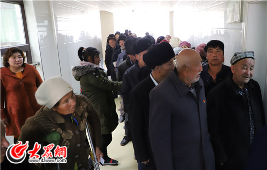 在疏勒縣人民醫院,當地白內障患者耐心等待山東專家的篩查