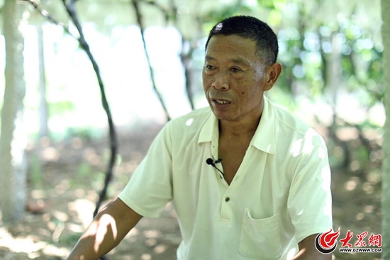 2018年7月,劉元九在自家葡萄地里接受大眾網(wǎng)記者采訪。