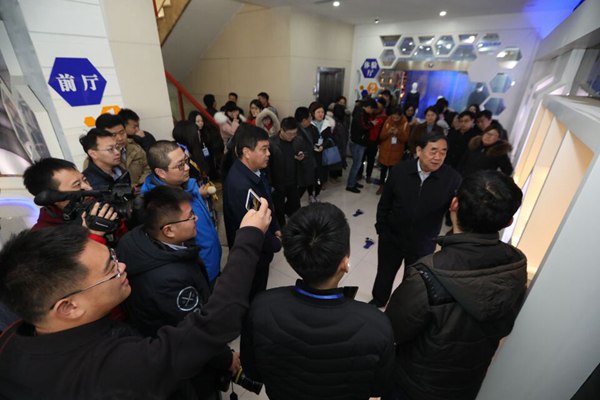 采訪團在圣泉集團產品展廳進行采訪。