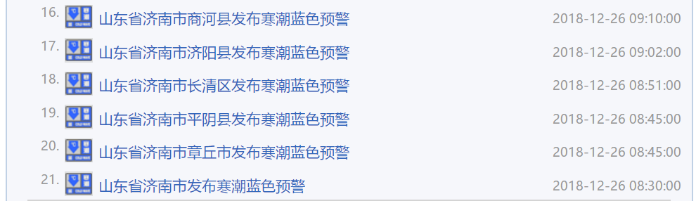 大眾網(wǎng)-海報(bào)新聞濟(jì)南12月27日訊 (記者 梁雯)今天早上,濟(jì)南等地又飄起了雪花。濟(jì)南氣象臺(tái)今早6點(diǎn)繼續(xù)發(fā)布寒潮藍(lán)色預(yù)警信號(hào),最高氣溫只有-1℃。山東其他城市的氣溫也將一降到底,截至27日上午,德州、青島、濱州、東營、煙臺(tái)、淄博等市共發(fā)布34條寒潮、大風(fēng)、道路結(jié)冰預(yù)警。