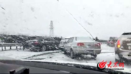 山東多地降雪路滑造成連撞事故 頻發(fā)道路結(jié)冰預(yù)警