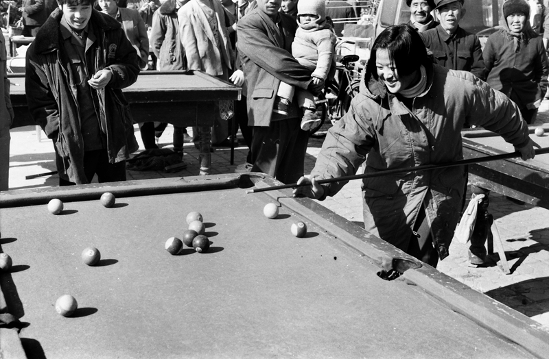 1996年,在濱州惠民的街頭,一位20歲左右的女孩在認真地打臺球。在上世紀八九十年代,隨著市場經濟大潮的興起,城鄉居民的娛樂項目日增,臺球老少皆宜,桌案一擺就打起來。