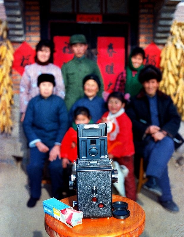 曾毅,山東工藝美術學院墨子國際影像研究院院長,山東東方國際攝影藝術促進會主席,絲路國家攝影組織國際聯盟執行主席。1982年春節,海陽一個漁村,祖孫三代一家人在拍全家福。拍完全家福,攝影師把這臺海鷗相機和上海120膠卷放在圓凳上,作為前景拍了下來。無心插柳柳成蔭,這幅作品在國內外也多次獲獎。