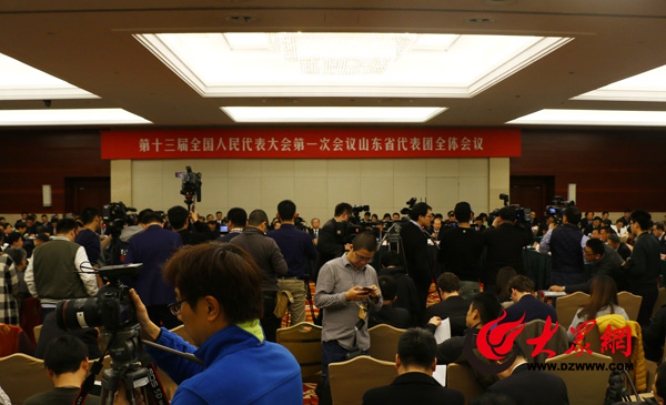 十三屆全國人大一次會議山東代表團全體會議現場。
