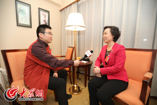 大眾網記者采訪全國人大代表、山東省水利廳副廳長曹金萍。(亓翔 攝)